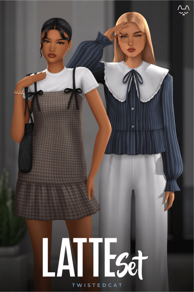 Latte Set Introducing the Latte set! A polished and flowy set, perfect for a coffee date. 🍃☕️ Hope you enjoy! Includes a blouse, pants(26 colors), and a dress(21 colors)