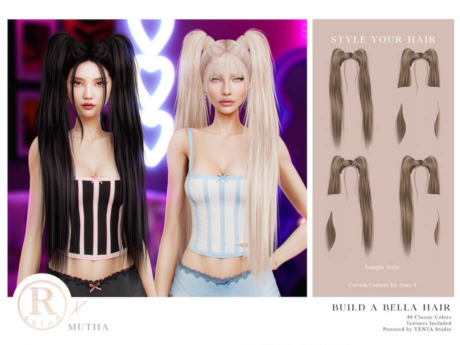 RAMA – Build a Bella Hair 40 Colors (233 on Patreon) Hat Compatible Disallowed for Random Clothes Shown: Bunni Set by MUTHA Powered by VENTA Check our profile for our linktree and exclusive content!