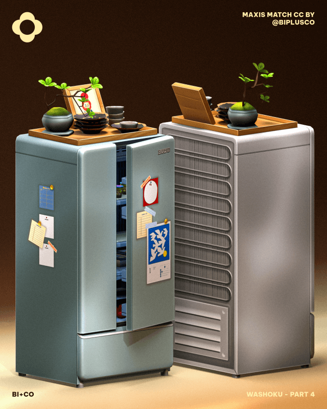 Washoku – Part 4 Welcome to the fourth installment of our Washoku series! Every master chef knows that the secret to a great meal starts with the freshest ingredients. Part 4 introduces the centerpiece of any modern-traditional Japanese home: the high-capacity refrigerator. These fridges combine high-tech cooling with a warm, aesthetic soul. All items are Base Game Compatible (BGC) Zenith Keeper (Pinned) | 10 Swatches Zenith Keeper (Pristine) | 10 Swatches